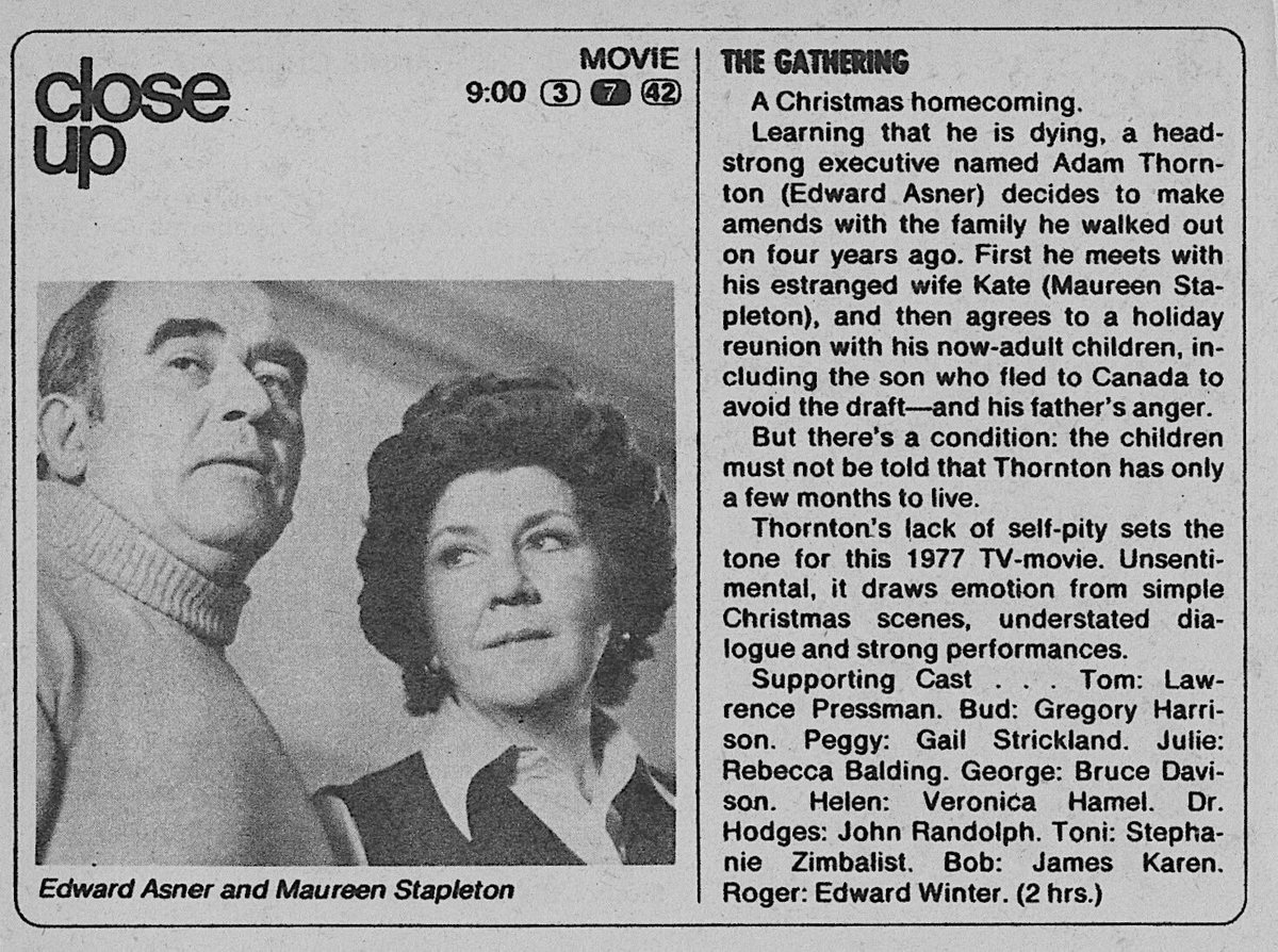 Retronewsnow On Twitter Abc Primetime December 4 1977 Tv Movie The Gathering Starring Ed Asner And Maureen Stapleton